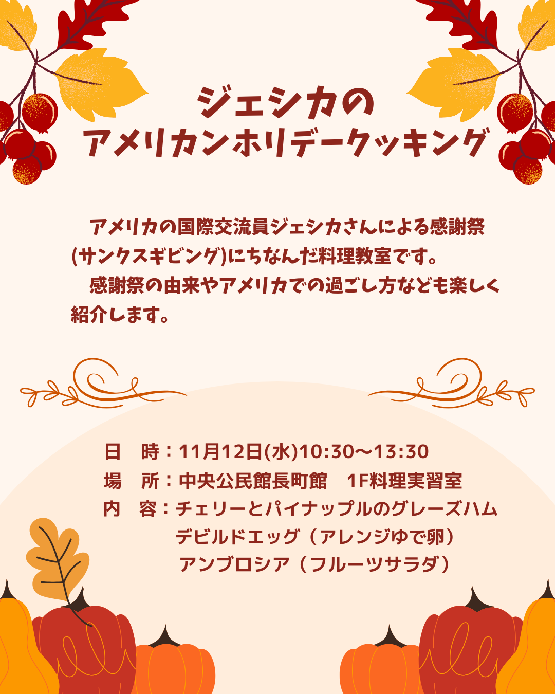 ジェシカさんとアメリカの感謝祭を一緒に楽しみませんか?