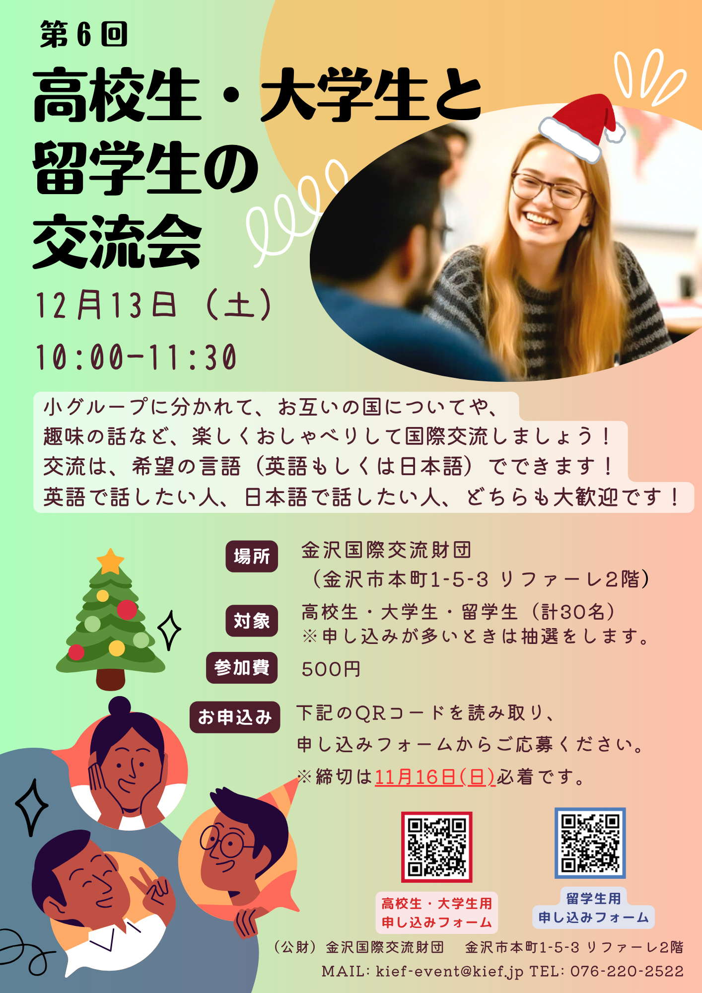 高校生・大学生・留学生 計30名(応募多数時抽選)