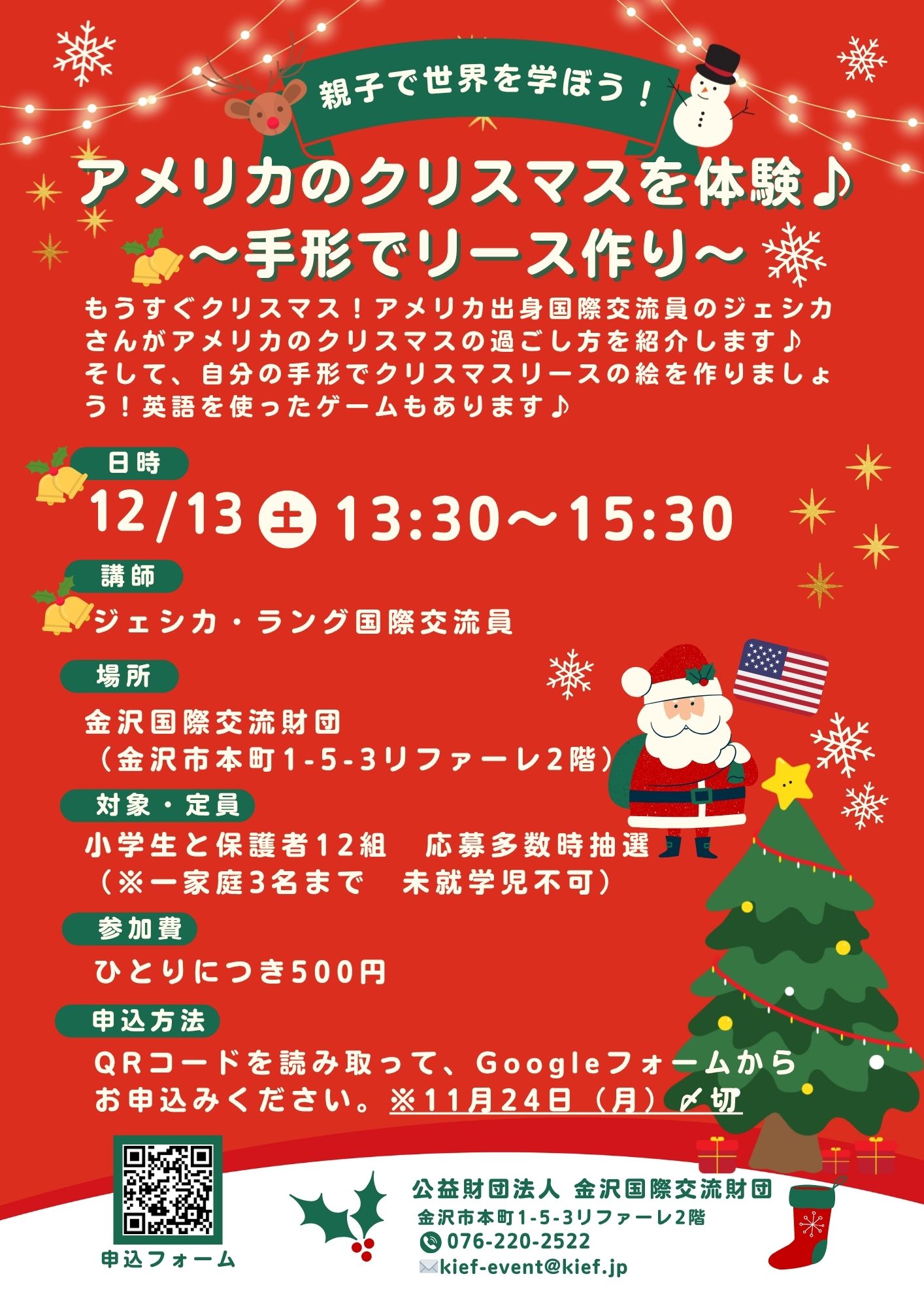 親子で世界を学ぼう!~アメリカのクリスマスを体験♪手形でリース作り~