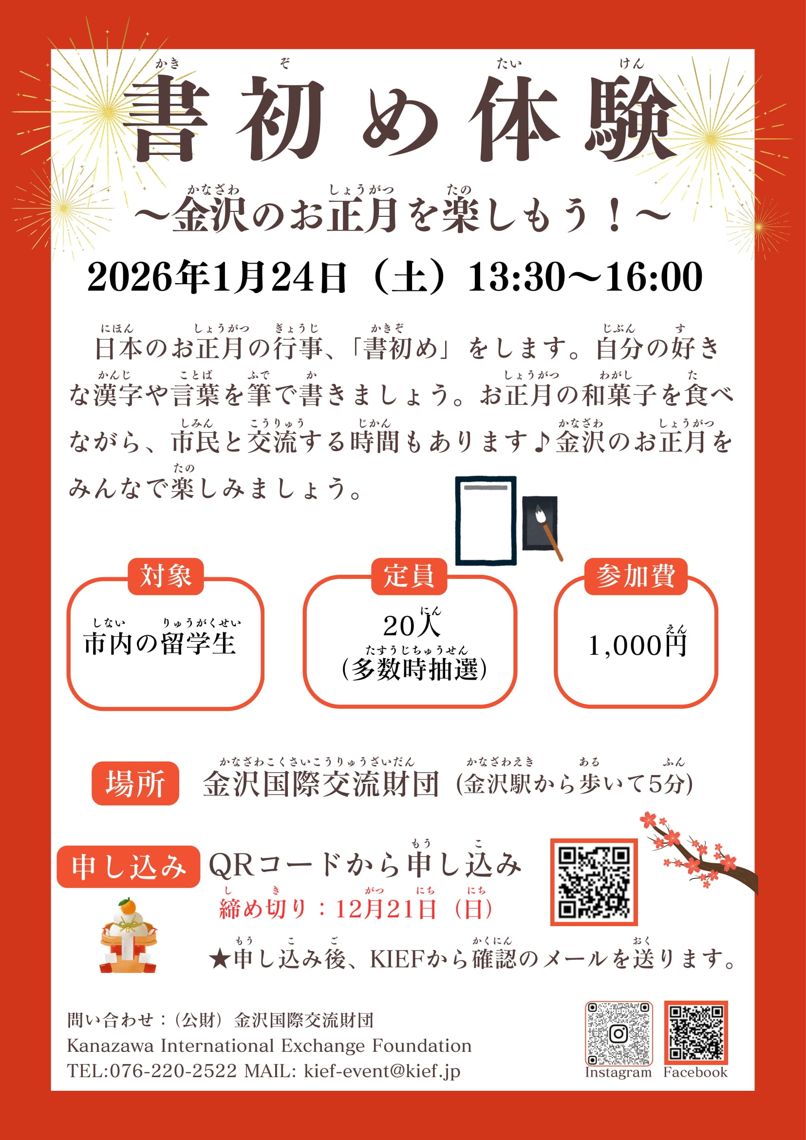 留学生のための金沢文化体験イベント 書初め体験~金沢のお正月を楽しもう!~