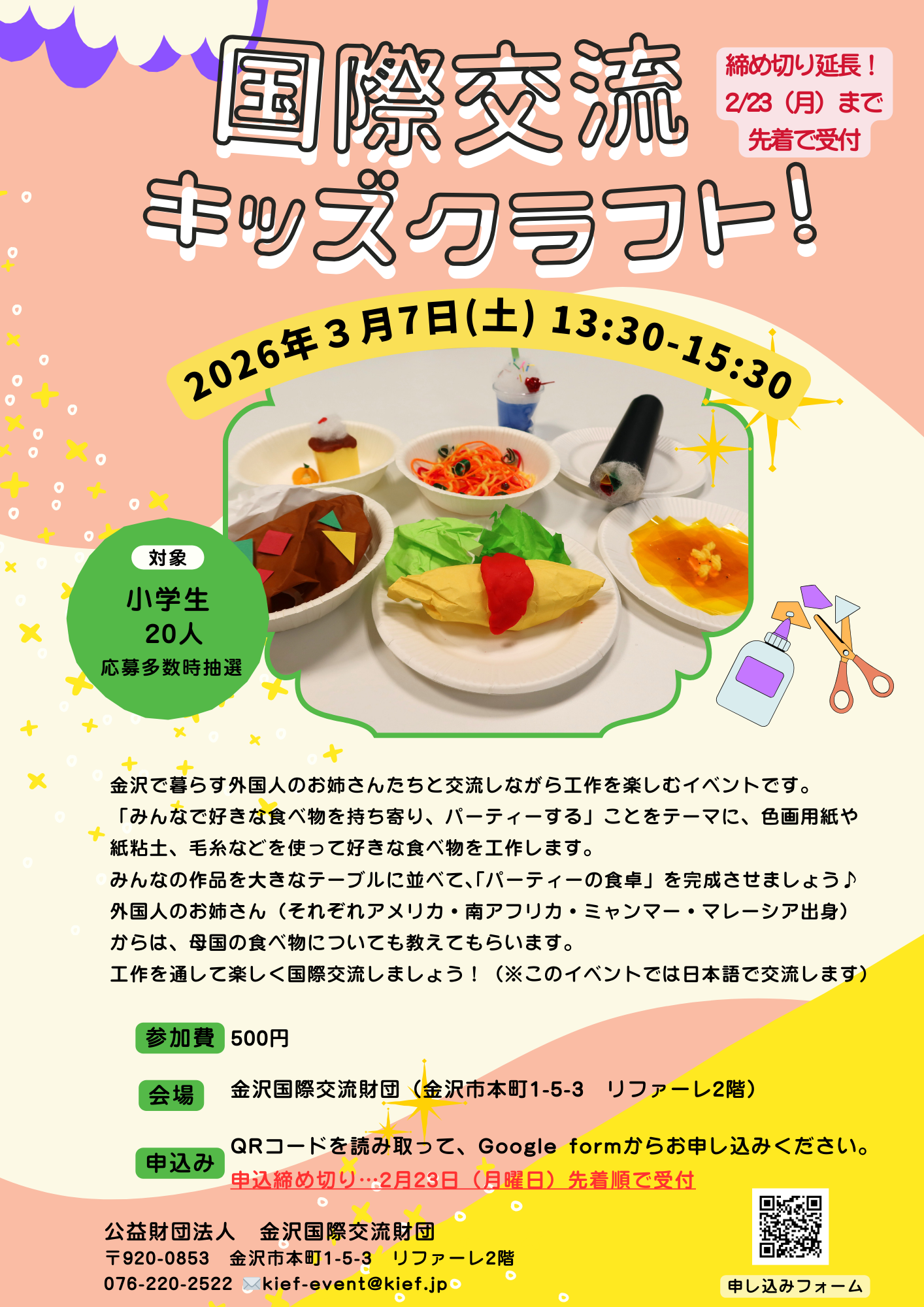 金沢で暮らす外国人のお姉さんたちと交流しながら一緒に工作をするイベントを開催します♪